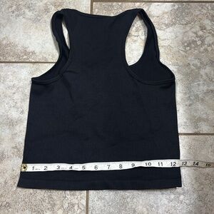 This black tank top features a fitted, cropped design that accentuates your style. Stretchy material that is great for everyday wear or workouts!