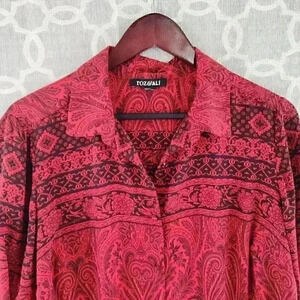 Roz & Ali Button Up Long Sleeve Paisley Chiffon Blouse L