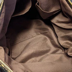 Zebra print in soft vinyl with ruffles all around it. Excellent condition. No rips or stains. It is really, really cute. I have too many zebra purses, so had to sell the two that I use the least.