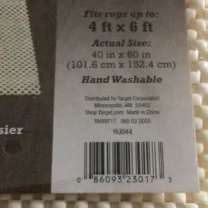 New 4x6 (40 inch x60 inch) hand washable rug pad. Keep area rugs in place without sliding. Cut to fit if needed.