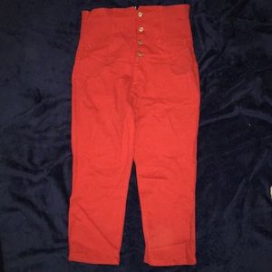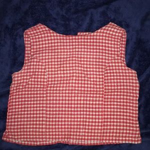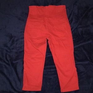 Red white and blue XL waist high button down in the back shirt the red pants are over the waist button and zip in the front with 2 pockets in front 2 in the back capris Jr 11/12