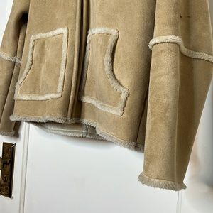 This faux suede faux Sherpa lined 60s 70s and 90s Y2K style winter fall luxury look coat jacket is the perfect oversized for a size small and a true fit for a size medium
