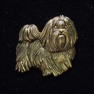 NWOT antique gold JONETTE JEWELRY 'Shih Tzu ~ Never a Bad Hair Day' pin. Pin measures 1 3/8" wide x 1 1/2" high.