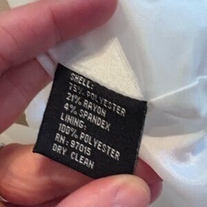 •	Fabric: 75% Polyester, 21% Rayon, 4% Spandex (Lining: 100% Polyester)