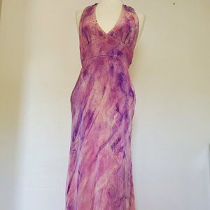 COPY - Silk Short midi halter Dress 6 8 10 bridesmaid party tiedyed painted pur…