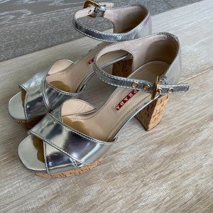 COPY - Silver Prada platform sandals with chunky heels - 70s vibe. size 6