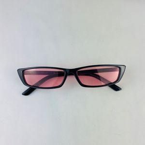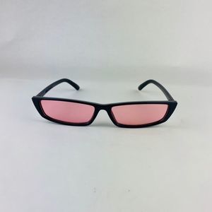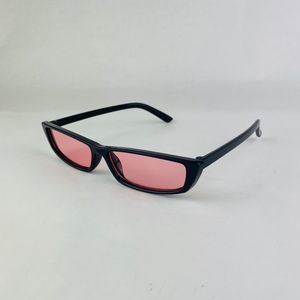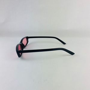 COPY - Slim rectangle black frame sunglasses. Pink lens.