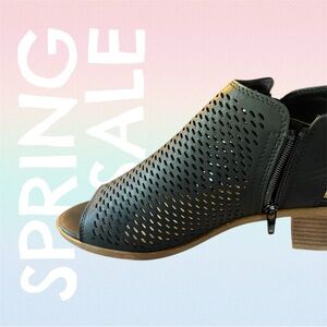 These Soda mules feature a sleek black perforated upper, offering both style and breathability. The low stacked wooden heel adds a touch of sophistication, making them perfect for versatile wear. With their open-toe design, these mules are ideal for transitioning between seasons.