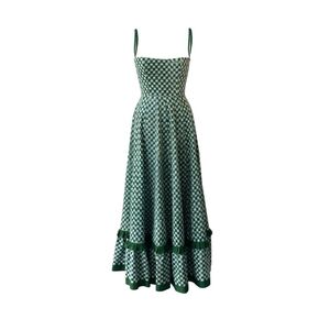 COPY - Spaghetti Straps Checkerboard Print Zip Slip Flowy Ruffled Long Maxi Dre…