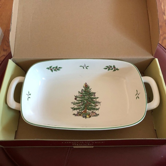 NIB Spode Christmas Tree Bread Basket Measures 14" X 7.75"