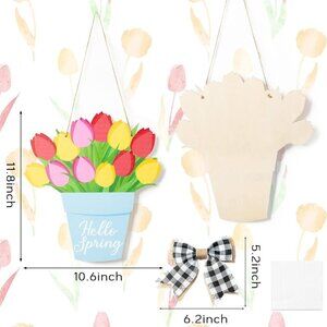 Spring Tulip Flower Decor: Featuring a "Hello Spring" message and tulip flower design, this door sign adds a touch of spring vitality to your home, porch, or garden.