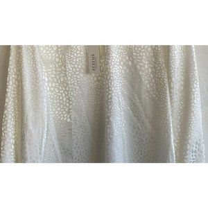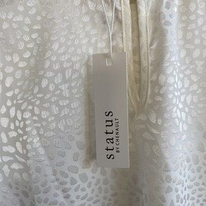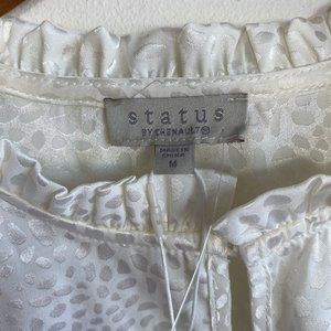Status by Chenault Blouse Womens Top Medium Ivory Pebble Ruffle Neck Sleeve NWT