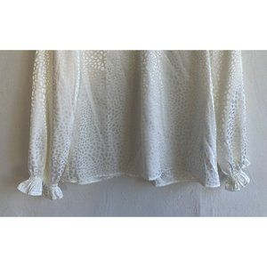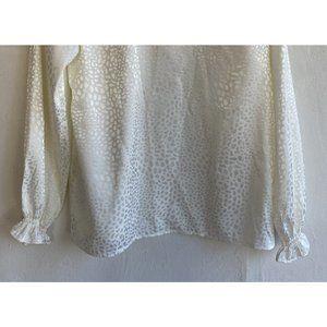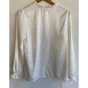 COPY - Status by Chenault Blouse Womens Top Medium Ivory Pebble Ruffle Neck Sle…
