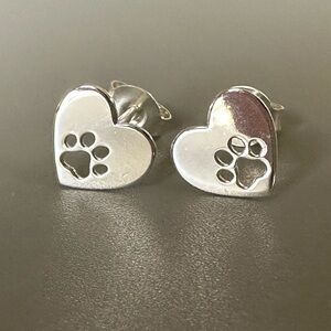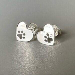 COPY - Sterling Silver Heart And Paw Print Simple Stud Earrings