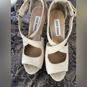Super sexy suede wedges, 6 inch heel (5 inch plus 1 inch platform). Never worn outside, minor imperfections throughout upper. Nude color goes with everything!