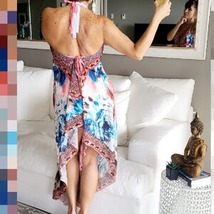 Swim Coverup One Size Beach Dress Lightweight Coastal Travel Halter NWT