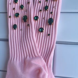 Pink slouch socks with green gemstones .. AKA SHINE FROM HEAD TO TOE !! Women’s one size