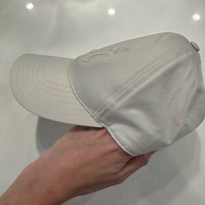 TRIOMPHE COTTON BASEBALL CAP in ecru size small. Worn one time and realized I needed size medium too late to return. There is a little bronzer from even wearing the one time shown in the hat. Perfect condition exterior
