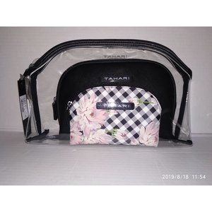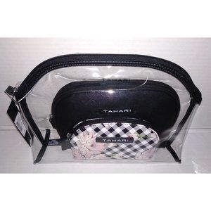 Set of 3 cosmetics bags by Tahari new with tags and includes bonus travel bottle