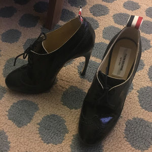 Women's Black Scotch Grain Leather Heeled Brogues - Mary Jane's/ boots /heels. Never been worn.