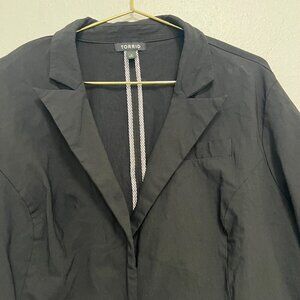 Torrid Black Ruched Sleeves Cut Away Fit Blazer Front Button Size 3 Excellent Condition. Open To Offers.