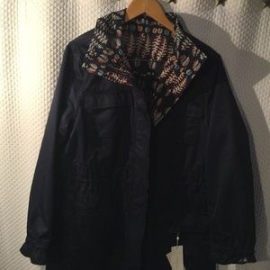 Reversible jacket, NWT, pristine condition, never worn. Great 3-season jacket for cool, damp, windy weather - or just to wear because it’s stylish! Navy on one side, “Tory Navy Fern” print on the other side. Plenty of pockets, versatile, unique. Size 10, may also fit sizes 8, M, L (I think Tory runs a bit small in sleeves and shoulders). Measurements: Across shoulders: 18”, Shoulder to hem: 36”, Across waist: 21”, Pit to pit: 22”.