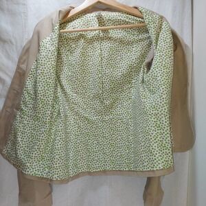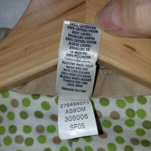 Vintage Old Navy Brand Brown Jacket, Polka Dot Lining, Small. Excellent condition on this Old Navy Brand brown jacket. Vintage. Size Small, measures 17.5 inches from pit to pit and 21.5 inches from shoulder to hem. Brown and green polka dot on white lining. Three buttons, one breast pocket and two front flap pockets. Slit cuff. Machine washable, 100% cotton. No visible rips or stains. All items clean and ready to wear. Items ordered before 12 noon Central time ship that day. Smoke and pet-free environment.