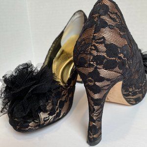 COPY - VINTAGE ROS HOMMERSON CHAMPAGNE BLACK LACE HEELS RED COLLECTION