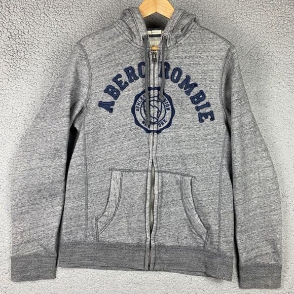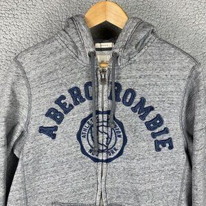 VTG Abercrombie & Fitch Muscle y2k Hoodie Heavyweight Zip Up Mens Medium Athletic Division News York Gray blue embroidered stitched