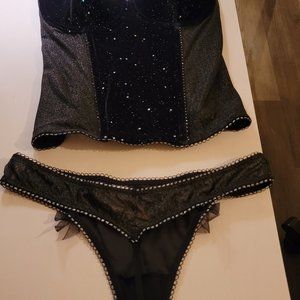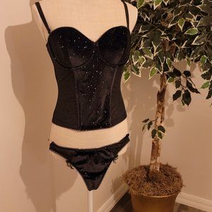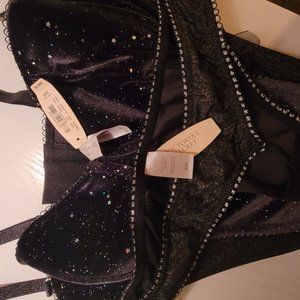 COPY - Victoria's Secret Velvet Shimmer Bra 34D Long Line Lined Corset Black New
