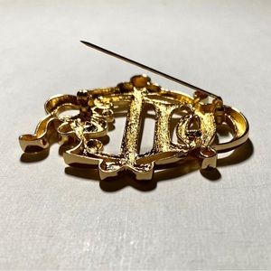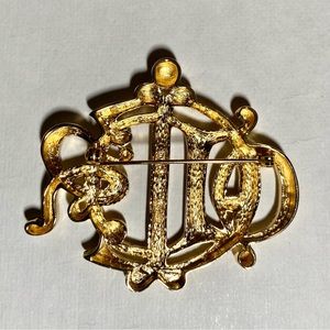 COPY - Vintage 1950’s CHRISTIAN DIOR Gold Plated Monogram LOGO Brooch. Germany.…