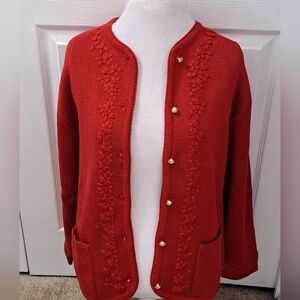 COPY - Vintage Crystal Kobe Red Knit Cardigan With Embroidered Flowers Size XL