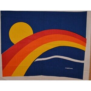 Vintage Marushka in excellent condition. The fabric, screenprint is bright primary colors with logo. This is incredible sun and rainbow mod pattern. Great for retro, mcm, mod, eames era, atomic, coastal home trends. Extremely well preserved.