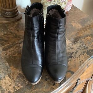 WOMAN GENUINE SHEARLING FULLY LINED HEELED BLACK LEATHER ZIPPERED ANKLE BOOTS EU 39 US 8.5