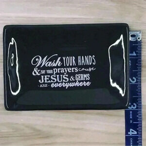 COPY - Wash Your Hands Jesus & Germs Are Everywhere Black Ceramic Soap Dish