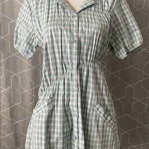 WeSC-NWOT-green and white plaid button front dress, two front pockets, short sleeves, new without tags, excellent condition, never been worn