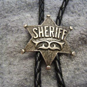 COPY - Western Pewter Antiqued Sheriff Badge Bolo Tie