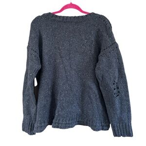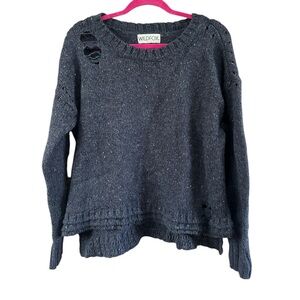 Cozy wildfox after party navy distressed wool blend long sleeve sweater size small.