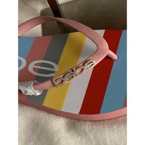 COPY 🌹Women’s Sandals Size 8 MINDEE BEBE LOGO Striped Pink Multi FLIP FLOPS