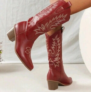 COPY - Women's Western Embroidered Vintage Boots With Block Heel, Mid Calf, V-C…