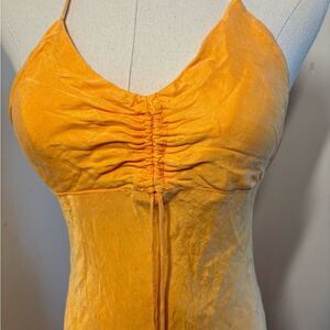 COPY - Zara Women's Size XS Orange Maxi Dress Spaghetti Strap V-Neck Ruched new