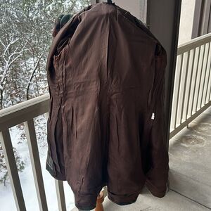 I love the plaid colors of grey, brown, hunter green, cream, black and pumpkin with just a hint of sparkle!! Perfect holiday coat. Great condition, just a little fade in the lining. Clean, no rips or holes. All buttons there but hidden. 2 front deep packets for warm hands in the right place. Tag is faded but it’s a wool blend. Beautiful fit . Says M, but go by measurements…Measurements: