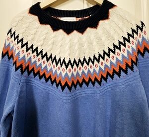 COPY - charterclub fair isle print knit crochet sweater blue size XL