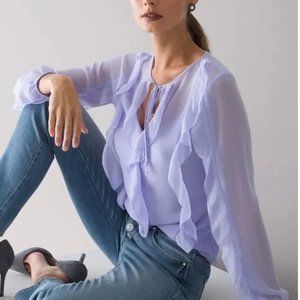 COPY - new white house black market ruffle chiffon blouse top lavander xs s