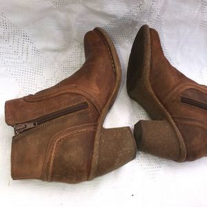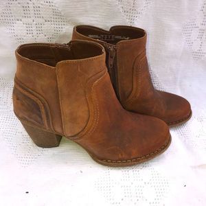 Gorgeous tan booties with rubber sole and heel. Inner side zipper closure. Round toe. Boots are in excellent condition with slight wear. Gorgeous
