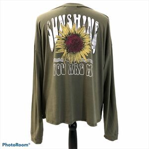 Army green, long sleeved, graphic t-shirt. In good used condition. Size XL.
