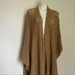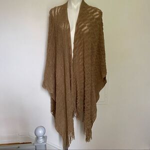 COPY - Textured Neutral Blanket Poncho Fringe Wrap Scarf