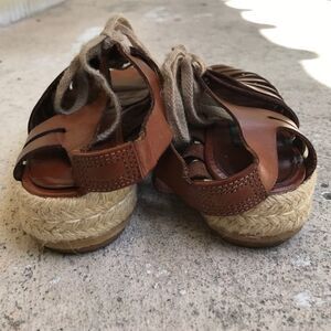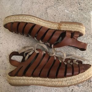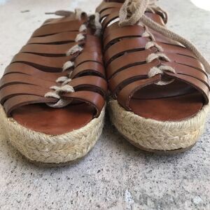 Is espadrille like leather sandals are in very good condition, soles and heels are good. On the inside side of one shoe you can see where the glue is, please look at the picture. Super comfortable