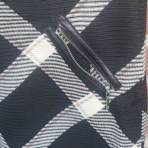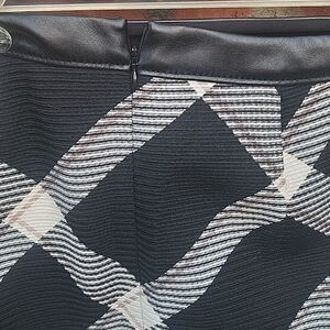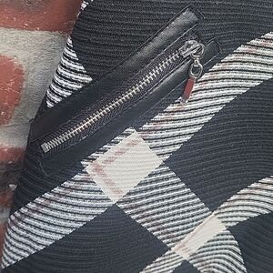 beautiful skirt with faux leather black accents. Side Zipper pockets. pinkish brown straps give an accent of color. Fully lined