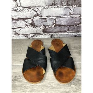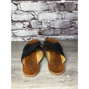 COR by Calleen Cordero Black Leather Cross Strap Flats Slides Sandals Women 10US